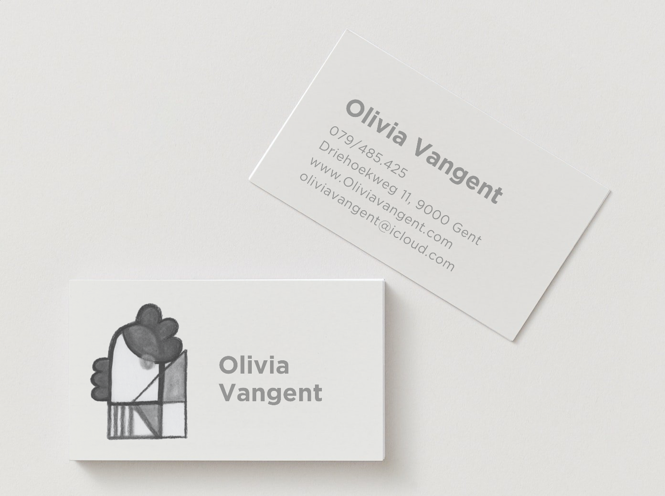 Minimalistisch logoportret voor Olivia Vangent met bijbehorend adreskaartje